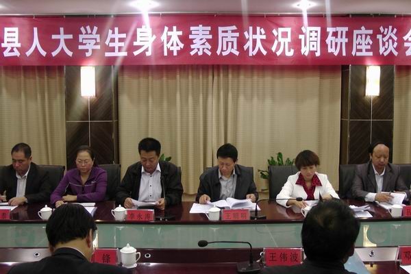 调研组在彪角中学检查 调研组一行先后深入彪角镇中学、儒林小学、凤翔中学、铁丰小学,通过听取汇报、查阅资料、与教职工交谈等形式,详细了解了我县中小学生身体素质情况。随后,调研组召开座谈会,听取了副县长王伟波关于全县中小学生身体素质情况的汇报,教育局、卫生局、关工委等部门负责同志和调研组成员围绕全县中小学生身体素质教育工作中存在问题进行了座谈讨论,提出了诸多建设性的意见建议。座谈会结束时,县人大常委会主任王明明、副主任王红玲分别作了重要讲话。 调研组在凤翔中学检查 调研组对全县中小学生身体素质情况给予了充分肯定。一致认为,县政府及教育主管部门高度重视中小学生身体素质情况,认识明确,措施有力,效果明显。一是工作思路清晰。县政府及教育主管部门根据全县体育教育工作实际,制定并出台了《关于进一步加强学校体育工作深入推进素质教育的指导意见》、《义务教育阶段中小学“体育、艺术2+1项目”实验方案》、《关于进一步加强学校体音美教学工作的通知》等指导性文件,进一步明确了我县体育教育发展的总体思路和目标任务,为提升体育教育质量促进学生健康成长夯实了工作基础。二是推进措施具体。近年来,县政府及教育主管部门能够不断加强中小学校体育硬件设施建设,严格执行体育课程标准,开齐开足课程,积极探索实施卫生保健、疾病预防、心理健康、营养干预等全程化管理措施和体制机制,促进了体育教育质量水平的不断提升。三是机制日趋完善。县政府及教育主管部门积极落实学校体育卫生工作发展各项规划,建立了联席会议制度;制定了补充专职体育教师的办法和机制,增加专职体育教师编制,配强师资队伍;不断优化督导考评机制,坚持将学生体质健康纳入学校目责考核,保证了学校体育工作的健康发展。四是总体效果良好。县政府及教育主管部门通过强有力的措施,不断改善体育运动环境,全力保证学生体育锻炼时间,努力提升学生的健康保健意识,促进了学生德育、智育、体育、美育有机融合,学生参与锻炼的主动性明显增强,学生身体素质明显得到提高,学生的体育参与、达标率明显攀升。